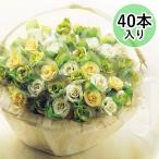 バスケット付き ミニ花束 40本セット グリーン イエロー ホワイトの薔薇 プチギフト ドラジェ 造花 お菓子 ディスプレイ