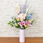 仏花 造花 プレミアム 一対 ホワイトパープルの供花 お墓用 仏壇 お盆 お彼岸 法事 命日 お悔やみ 夏 枯れない フェイクフラワー 花束仏花