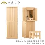 祖霊舎 神徒壇 神具付き モダン 家具調 2段型 椅子付き LEDライト付き 収納付き 押し込み扉 タモ 高さ135cm×幅48cm 祖霊社 セット 神棚 (代引き決済不可商品)