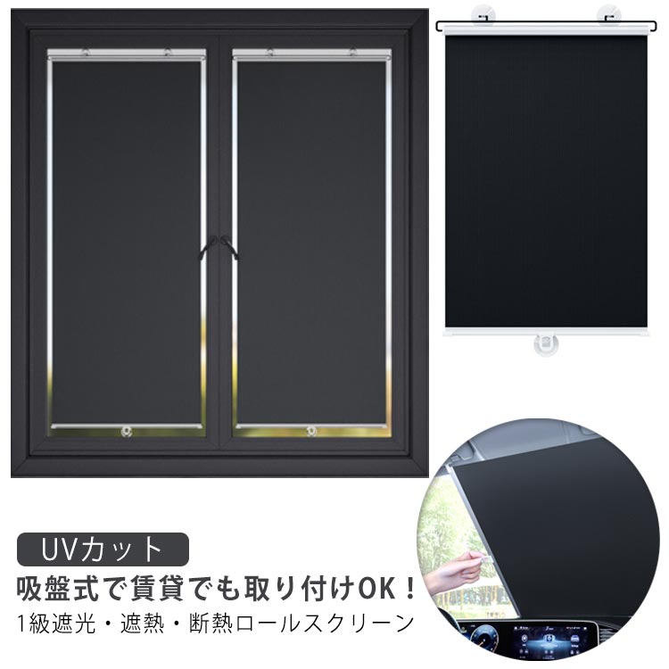 ロールスクリーン ロールカーテン 吸盤付き 賃貸OK 遮光 断熱 遮熱 UVカット 遮光カーテン 真っ黒 プライバシー保護 間仕切り 日差し 西日対策 車用カーテン 穴あけ不要 防寒 ブラック 送料無料
