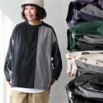 着痩せ ロンT レディース 長袖tシャツ ワイド 重ね着 配色 リブ 切り替え 綿100% トップス 軽い 秋 カジュアル パティ GENTIL ジャンティ
