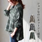シャツ 長袖 レディース 袖リブ すっきり 着痩せ バンドカラー チェック柄 マドラスチェック 綿100 コットン スラブ 薄手 軽い 伸縮性 パティ