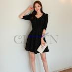 タイトワンピースミニ入学式 卒業式パーディードレス黒 Vネックワンピース5分袖 着痩せ フェミニン キレイめ お呼ばれワンピース物 大人 夏