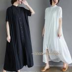 ロングワンピース レディース ゆったり 半袖 ワンピース シンプル ワンピース リネン カジュアル 大きいサイズ Aライン 無地 森ガール風 夏