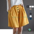 ショートパンツ 綿麻風 レディース ボトムス ゆったり 薄手 涼しい ハーフパンツ 短パン 膝上 夏 着痩せ 可愛い 無地 シンプル 部屋着