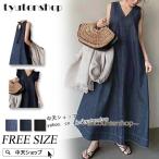 夏デニムワンピース レディース vネック 夏ワンピース 40代50代 ノースリーブ 袖あり ゆったり 体型カバー 韓国風 カジュアル 着痩せ オシャレ ママ 2023新作