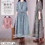 ロングワンピース夏 40代 レディース 長袖ワンピース花柄 綿麻風 ゆったり レトロ カジュアルワンピース春 体型カバー綿麻ワンピース 着痩せ 30代40代50代