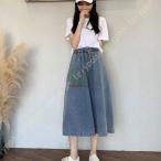 スカーチョ ワイドパンツ デニムパンツ 春 夏 レディース ワイド ロングパンツ ガウチョパンツ ジーパン 普段着 カジュアルシンプル 着痩せ デニムパンツ