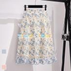 レーススカート レディース Aライン スカート 花柄レース 膝丈スカート 姫系 ゴージャス 着痩せ 花柄レーススカート 裏地付き ミディアム丈