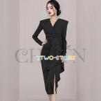 タイトワンピースミニ パーティードレス夏 長袖切り替えワンピース Vネック 長袖 スリット セクシー お洒落結婚式韓国風着痩せデートタイトワンピースミニ白
