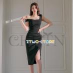 夏白タイトワンピース膝丈 韓国風 ノースリーブタイトワンピーススリット 入学式 卒業式お呼ばれ パーティードレス大人 着痩せ 20代30代 キャミワンピース黒