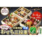 ふるさと納税 おせち 秋田県 秋田市 おせち 先行受付 秋田絢爛 2026 光琳特製 おせち 三段重 雅 3〜4人用 45品 2025年お申し込み分 あきた味めぐり 御廚光琳 …