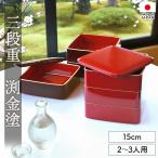 重箱 3段 5寸 15cm 溜色 朱色 お重 日本製 山中塗 渕金塗 二人用 三人用 小さめ おせち おしゃれ お正月 運動会 お花見 シンプル