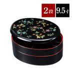 重箱 2段重 小判 仕切り オードブル 9.5寸 28.5cm 黒 花の小道 金蒔絵 仕切付 大きい 二段 紀州漆器 日本製 [27-41-7]