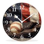 【並行輸入品】 Kyvita 電池式 クォーツ 壁時計 カチカチ音を立てない 静音 モダン 壁時計 オフィス用 野球やグローブに 星条旗付き (40.6 cm)