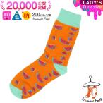レディース ソックス オレンジ スイカ レディース ソックス レディースソックス 靴下 ハイクルー丈 女性用 果物 柄物 かわいい くつした 女性 カラフル 綿 おし