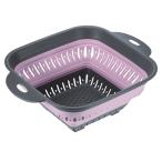 uxcell シリコン折りたたみザル 正方形 折りたたみ式ストレーナー ハンドル付き シリコン パスタ ジャガイモ 野菜の水切り用 ピンク