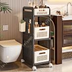 スリムワゴン 洗面所 リビング キッチン 収納 ストッカー 野菜ストック ストックバスケット4段キャスタ付