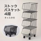 スタッキング バスケット 4段 黒 日本製 収納ラック 小物整理 リビング収納 キッチン収納 野菜ストッカー キャスター付き 収納 コンパクト