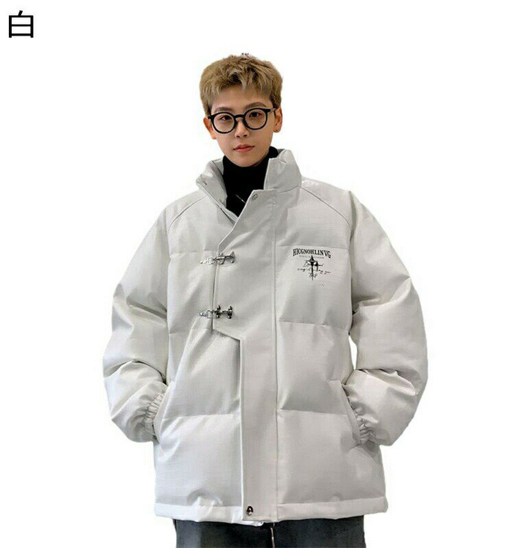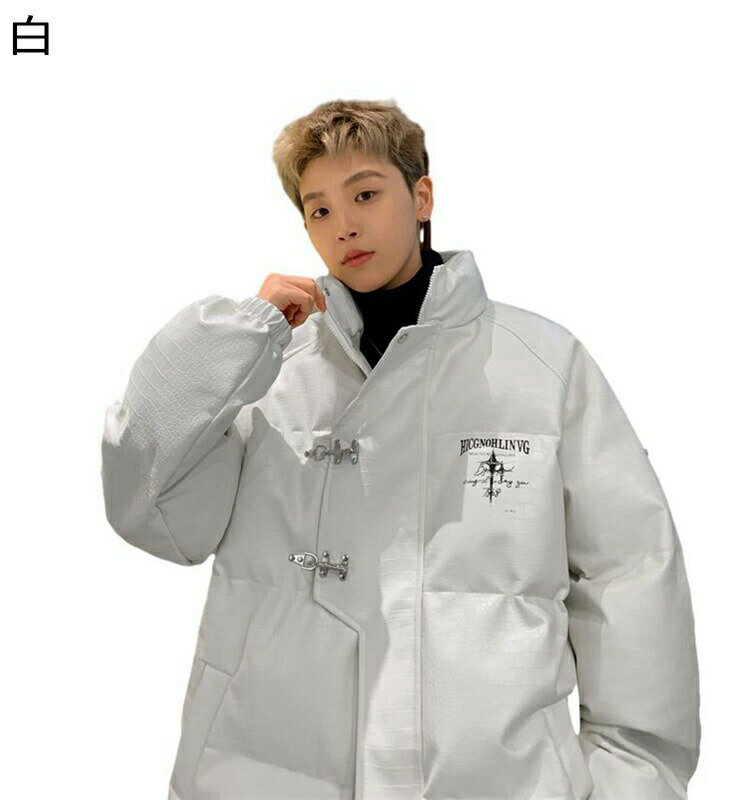 中綿ジャケット ショートコート メンズ ワニ柄 PUレザー 星 金属ボタン付き 撥水 ラメ プリント 落書き 綿入れ ショート丈 ウィンタージャケット 長袖 綿服 ファスナー ポケット 上着 男性 冬