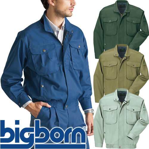 作業服 ブルゾン ビッグボーン ジャケット 4416 作業着 ジャンパー 吸水 柔らかい肌触り 金属ボタン 国産素材 通年 上着 おしゃれ かっこいい シンプル 人気 定番 作業 工場 外作業 ユニフォーム 仕事 土木 工事 現場 大きいサイズ 4L 5L 緑 青 ベージュ