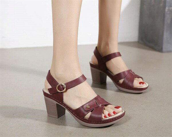 売れ行き1位 大きいサイズ 疲れにくい サンダル 金属ボタン 太いヒール オープントゥ