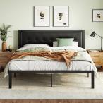 【並行輸入品】IMUsee キングサイズ ベッドフレーム ヘッドボード付き フェイクレザー 布張りボタン タフテッドスタイル 強力な金属サポート