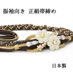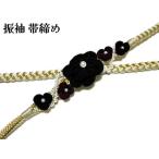 82BN100276【逸品物】帯締め/振袖用帯〆/和つう/桜細工/帯留付き/正絹/平打ち/M寸/黒/金/日本製