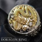指輪 メンズリング 18金 K18 18k 印台 ダイヤモンド ドラゴン 龍 プラチナ イエローゴールド コンビ Pt950 男性 幅広 30代 40代 50代