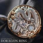 指輪 メンズリング 18金 K18 18kPG 印台リング ダイヤモンド ドラゴン 龍 プラチナ ピンクゴールド コンビ 男性 幅広 ごつい 太め