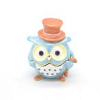 フクロウ 七宝焼き 小物入れ 7cm 金属製置物 ラインストーン装飾付き 水色 ライトブルー シルクハット