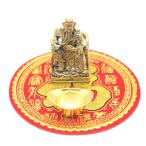 関羽の置物 風水三点セット 5cm 金属製 ミニチュア 着席タイプ 元宝 福飾の敷物付き