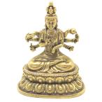 千手観音菩薩の置物 仏像 金属製 ミニサイズ 6cm 座像 6本腕 多腕