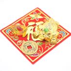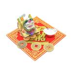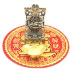財神の置物 風水三点セット 5cm 金属製 ミニチュア 腰掛タイプ 元宝 福飾の敷物付き