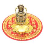 財神の置物 風水三点セット 5cm 金属製 ミニチュア 腰掛タイプ 元宝 福飾の敷物付き