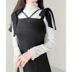 ワンピース 「mily bilet」揺れるリボンに釘付け!フレアラッフルシルエットリボン使いキャミワンピ