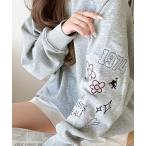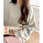 トレーナー スウェット ハンドメイド風刺繍に釘付け。前後2wayランダム袖刺繍裏起毛オーバーサイズスウェット レディース