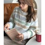 ニット セーター 「mily bilet」カラフルミックスで視線釘付け。マルチボーダーシャギーニットプルオーバー(長袖) レディース