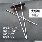 大頭釘 黒丸付 長さ25cm 太さ5mm 200個入/CS 黒丸釘 押さえピン 押さえ釘 デカピン パッドセット 防草シート 除草シート 人工芝 造園 園芸 ガーデニング