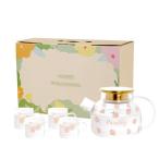 耐熱ガラス ティーポットセット かわいい プリント 花柄 雪の華 満水容量1000ml 急須 大容量 茶こし カップ付き ギフト包装 耐熱