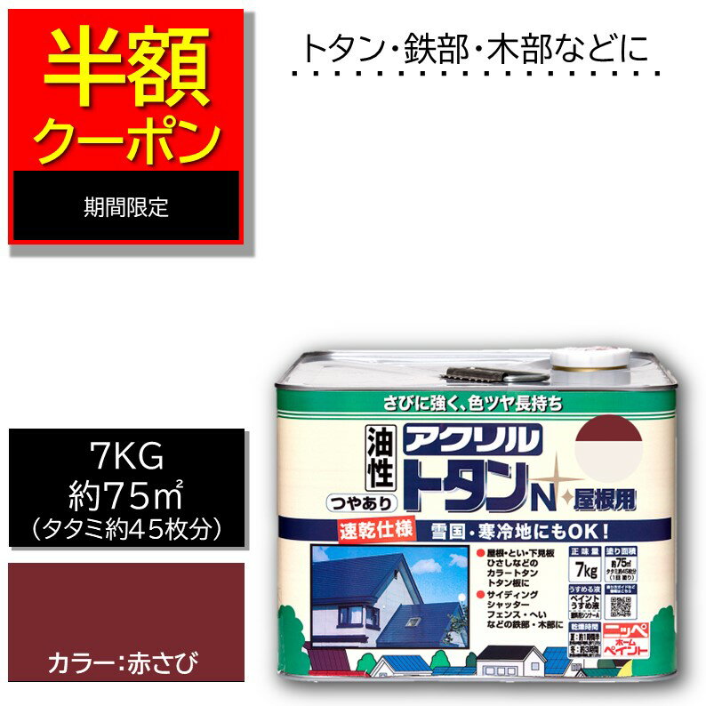 アウトレット特価品50%OFF〜【公式ストア】【半額クーポン配布中】屋根ペンキニッペアクリルトタンN屋根用7KG赤さびニッペホームオンライン|トタン屋根耐候・耐久性抜群油性塗料屋根塗り車庫塗り物置屋根つやあり屋根用鉄部用安い