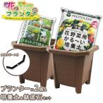 プランター園芸4点セット ブラウン 30cmプランター2個&プロトリーフ培養土25L&鉢底石ネット入り 家庭菜園 野菜 花 ガーデニング