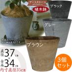 植木鉢 大型 おしゃれ プランター 人気 おすすめ 園芸用品 観葉植物 ブラウン グレー ブラック 茶 灰 黒 貯水機能付き アートストーン コニック XL37 3個セット