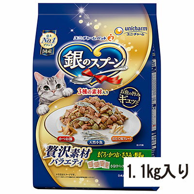 【ブラックフライデー15%OFFクーポン配布中】銀のスプーン 贅沢素材バラエティ まぐろかつおささみ野菜味 天然小魚・かつお節ほたて味フレーク添え 1.1kg【賞味期限 20270331】