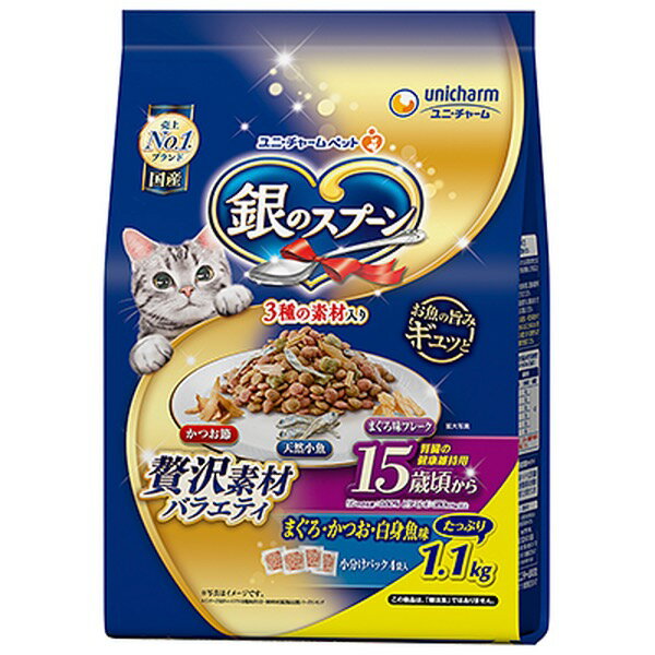 【ブラックフライデー15%OFFクーポン配布中】銀のスプーン 贅沢素材バラエティ まぐろ・かつお・白身魚味 天然小魚・かつお節・まぐろ味フレーク添え 1.1kg【賞味期限 20270331】