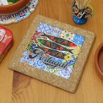 ポルトガル製 ポットプレート 15cm 鍋敷き サーディン イワシ お魚 カラフル 耐熱 絵タイル コルクフレーム ナベシキ pmc-8648s