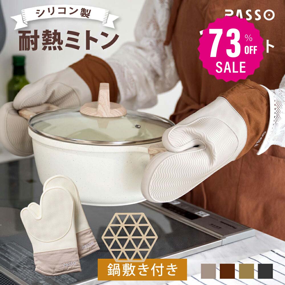 ★全品45%OFFクーポン!★耐熱ミトン オーブンミトン 鍋つかみ 耐熱 300℃ 2枚セット 鍋敷き付き 手袋 耐熱防水 左右セット オーブングローブ 両手用 やけど防止 シリコン製 キッチンミトン 洗いやすい かわいい おしゃれ 洗える 長持ち 送料無料 sry-c-0032