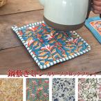 【本日ポイント3倍!】鍋敷きミトン カリーノブロックプリント 鍋つかみ ミトン 布 花柄 フラワー エレガント 洗える 綿 コットン 鍋敷き ポットマット アジアン雑貨 ファブリック インテリア
