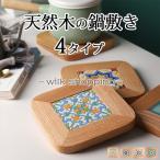 鍋敷き 鍋しき 木製 おしゃれ ポットスタンド 天然木 無垢材 アンティーク かわいい ボヘミアンタイル付きウッド鍋敷き