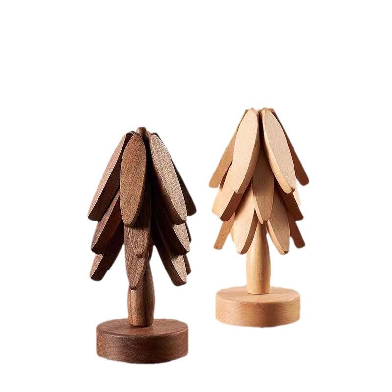 鍋敷き コースター クリスマスツリー型 断熱 耐熱 木製 キッチン 砂鍋 鍋 茶碗 碗 原木色(x100)